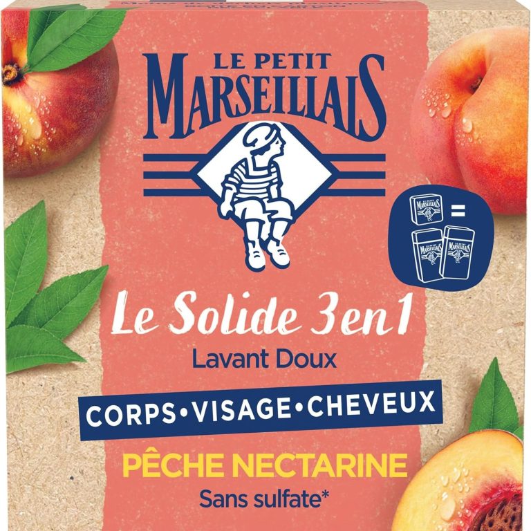 - oin 3 en 1 : Découvrez le Solide 3 en 1 Lavant Doux Pêche Nectarine Le Petit Marseillais. Enrichi en pêche et nectarine bio, il nettoie, hydrate et adoucit votre corps, visage et cheveux en un seul geste.