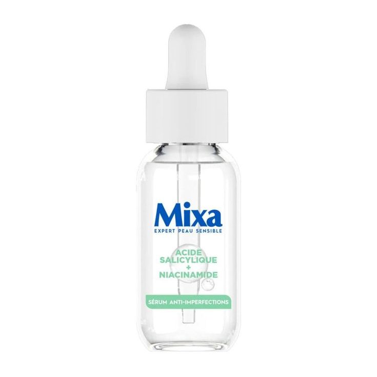 - Le nouveau sérum Anti-Imperfections Mixa pour les peaux à imperfections, Cliniquement prouvé, il réduit les imperfections, les points noirs et resserre les pore. Réduit point noirs et boutons, Resserre les pores.
